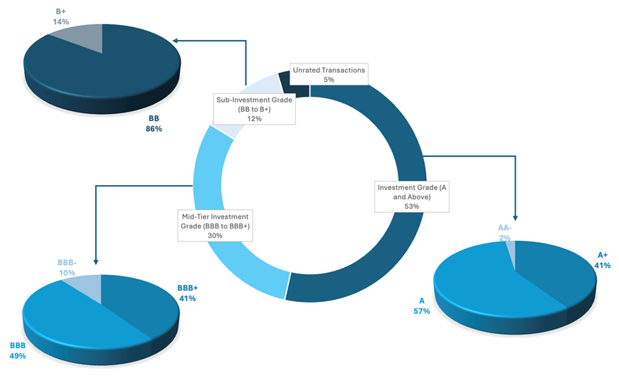 The transactions span a broad credit spectrum. The majority of the transactions fall within the investment-grade category, with a balanced distribution across other risk tiers. Unrated structures were supported by comprehensive internal credit assessments and credit enhancements where appropriate.