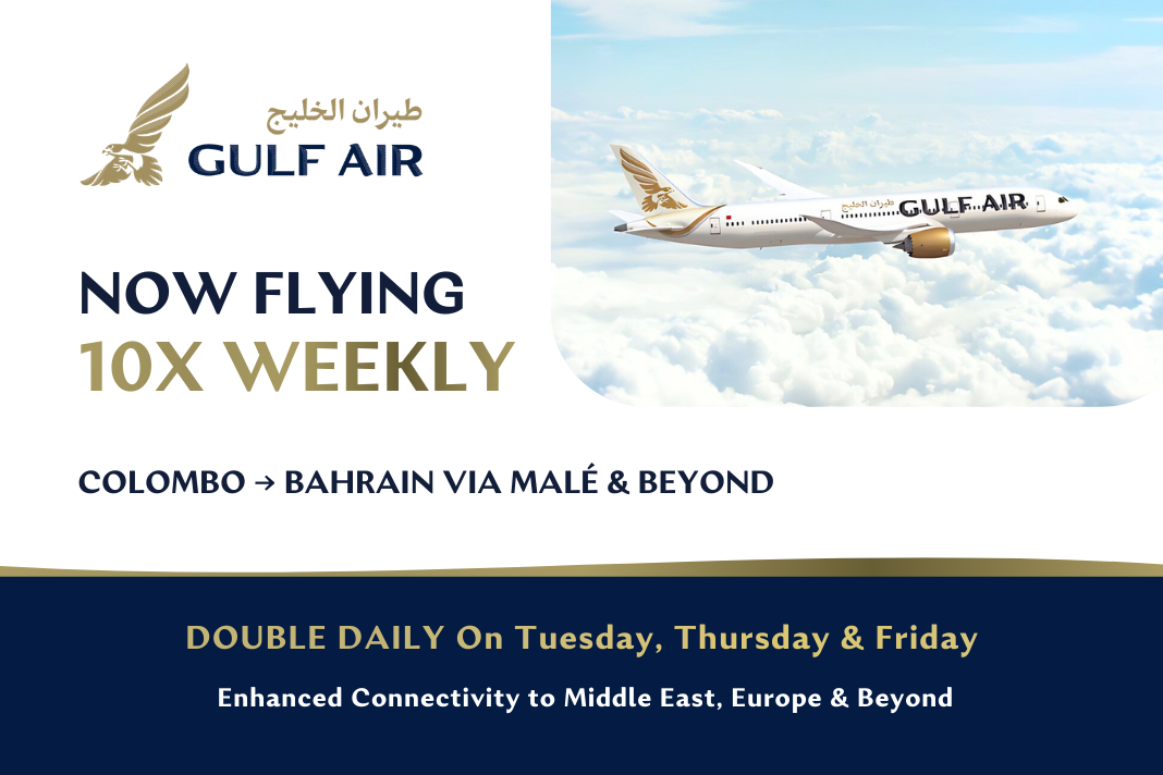 Gulf Air, the national carrier of the Kingdom of Bahrain, has announced an increase in flight frequencies between Bahrain and Colombo, expanding from daily operations to 10 flights per week effective 19 February 2026.