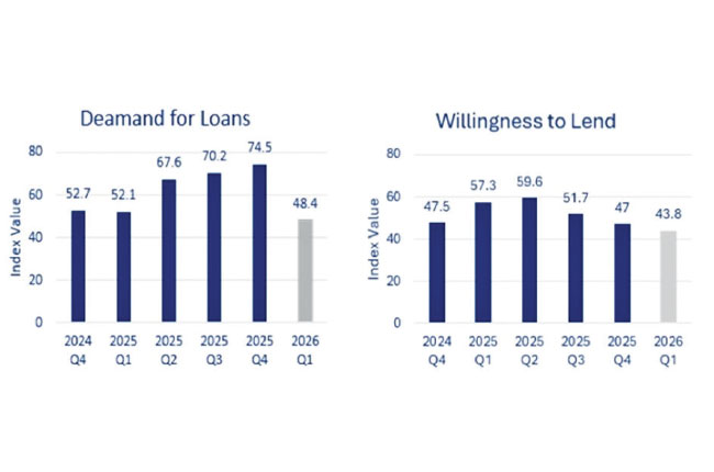 While corporate loan demand and banks’ willingness to lend to corporates remained soft last quarter, banks are signaling a shift in lending focus back towards the corporate segment this year. In the 1Q-2026 outlook willingness to lend to corporates rises to 58.4, while willingness to lend to Retail and SMEs moderates.  The overall predictive outlook for 1Q-2026 points to softening, which suggests that credit growth is now driven more by sector-specific risks and operational constraints than by interest rates alone. (MFJ)
